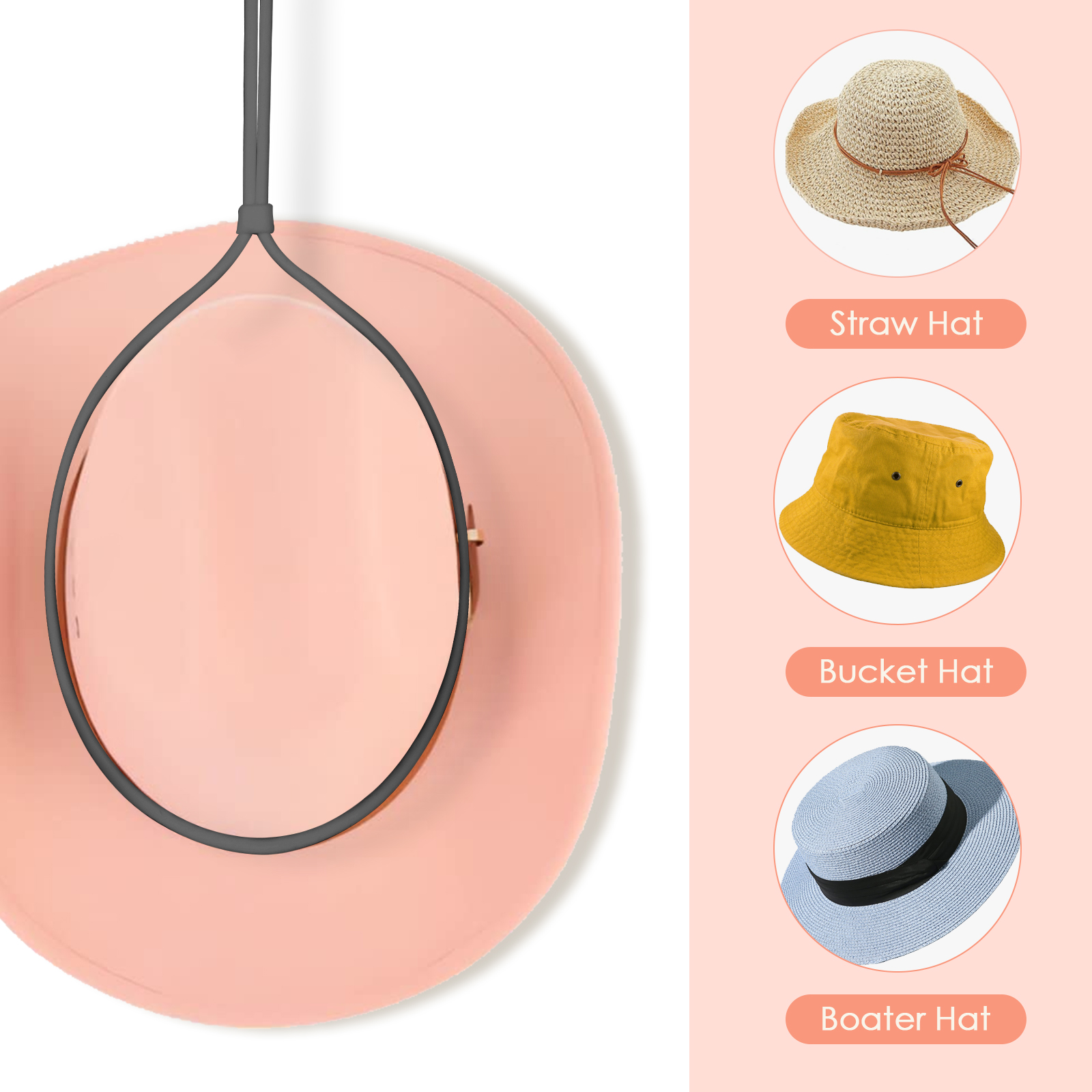 Hat holder with hanging buckle design can hang on the bag, suitcase and truck seat for easy carry.