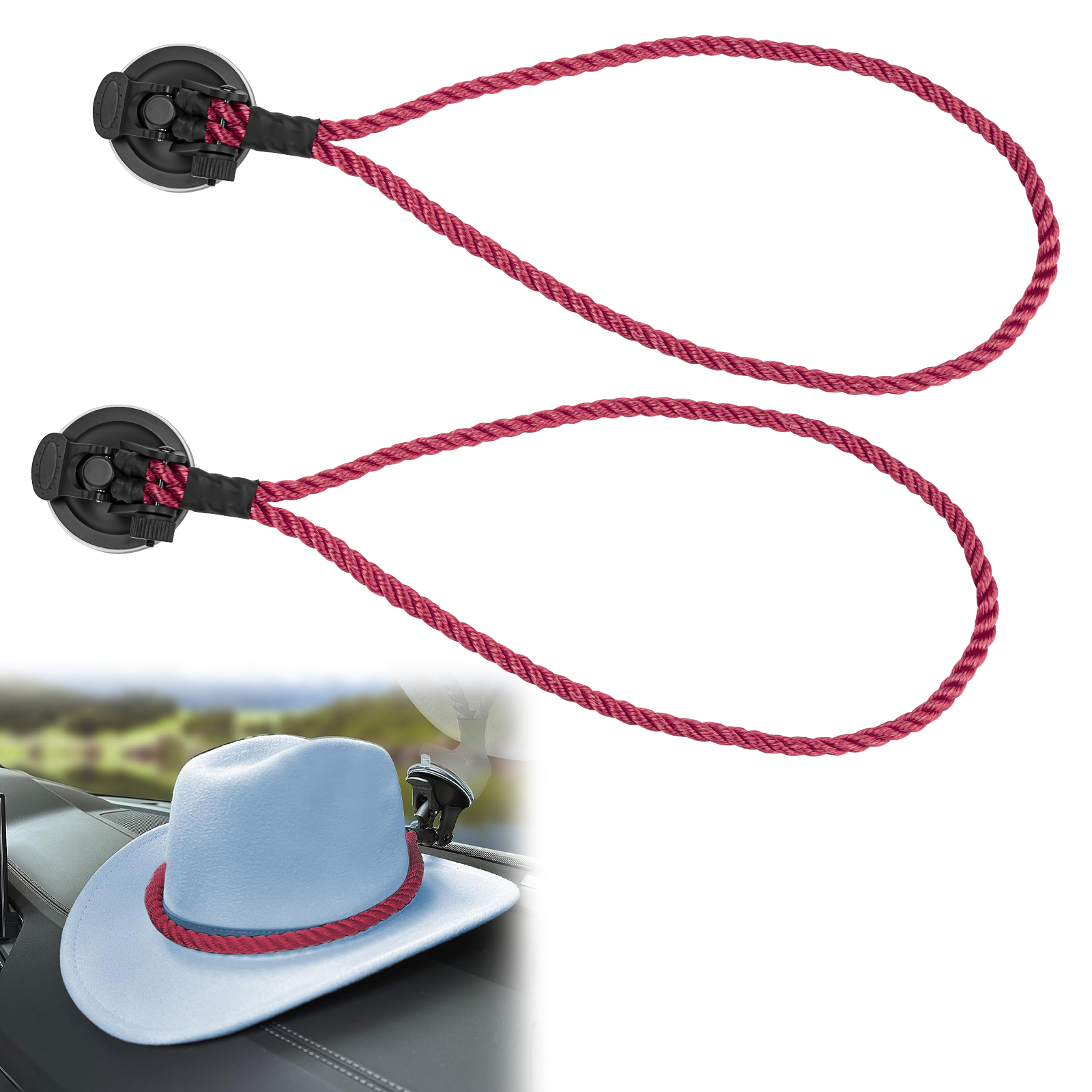Pack Cowboy Hat Mounts for Vehicle, Cowboy Hat Holder with Suctions Cup, Cowboy Hat Rack for Truck Seat Car Accessories (Red)