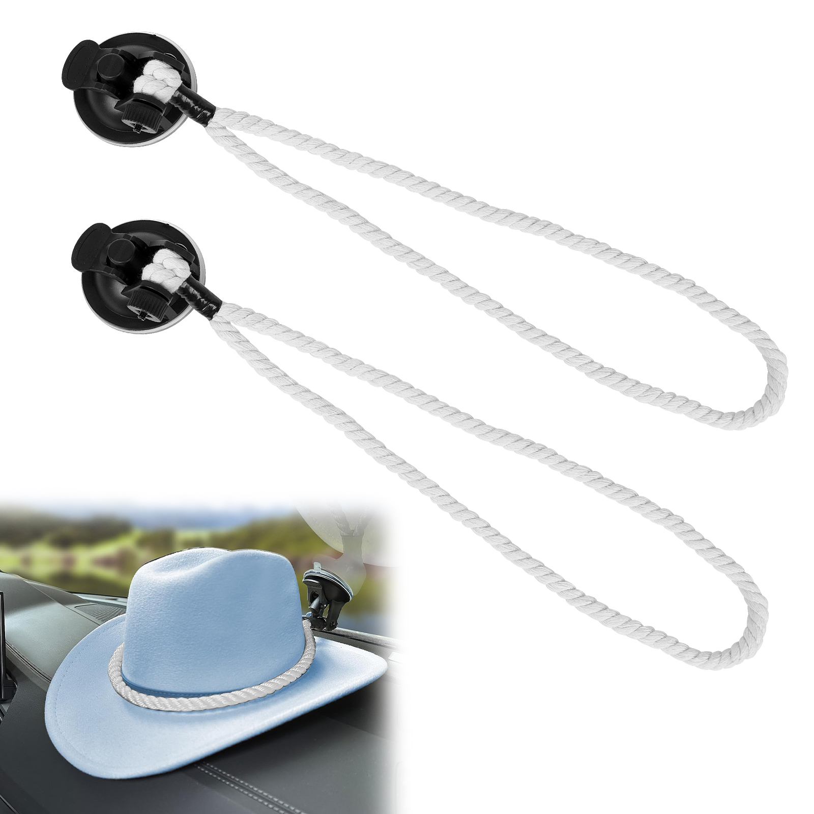 Pack Cowboy Hat Mounts for Vehicle, Cowboy Hat Holder with Suctions Cup, Cowboy Hat Rack for Truck Seat Car Accessories (White)
