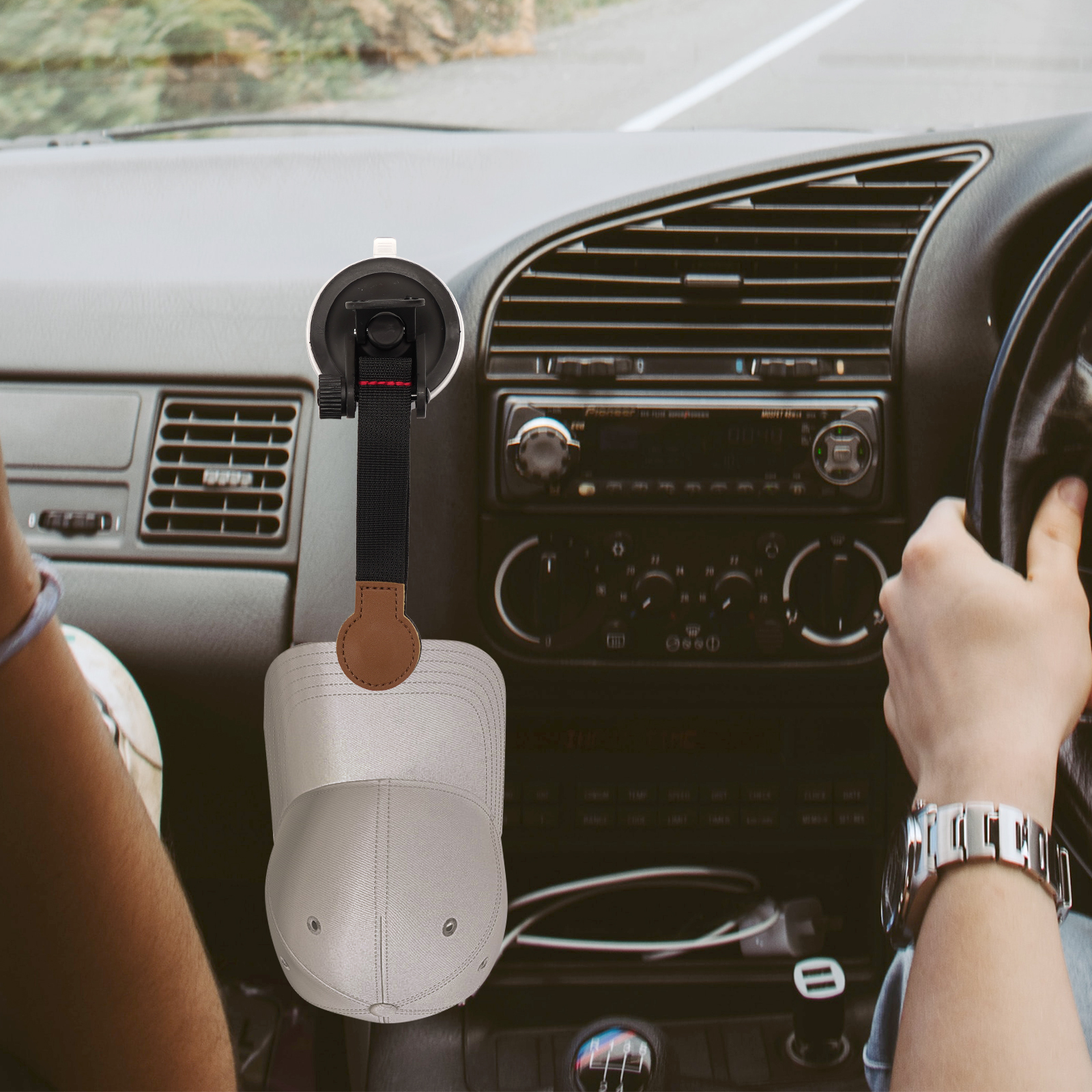 Universal hat holder with silicone suction cup to firmly fixed to the windshield or dashboard, not easy to fall off.