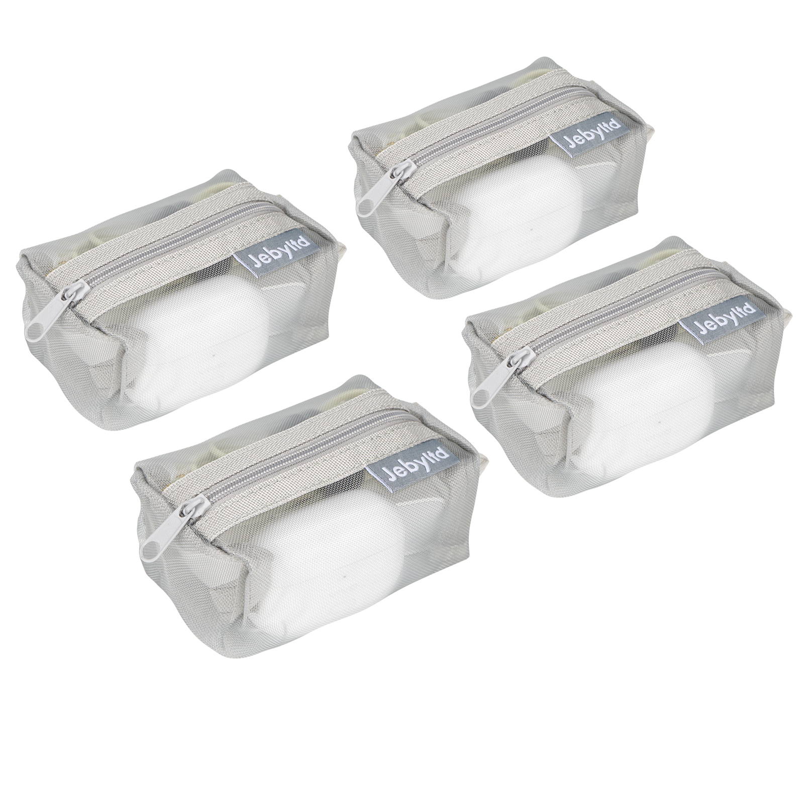Portable square mesh storage bag dimensions: 4.3” x 2.8” x 2” (11cm x 7cm x 5cm)