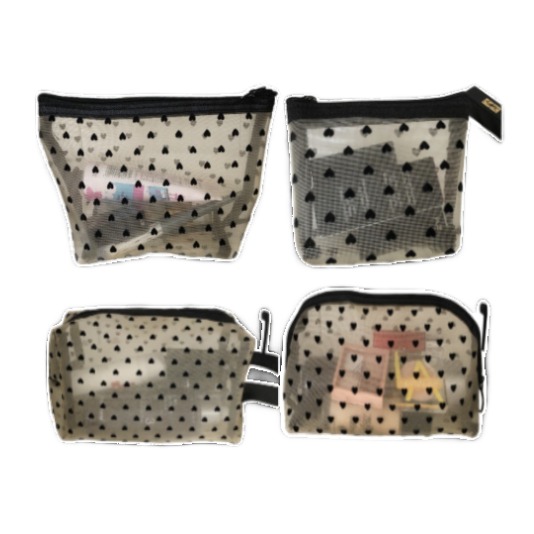 Cute heart mesh cosmetic bags made of nylon mesh, practical and breathable, easy to clean.