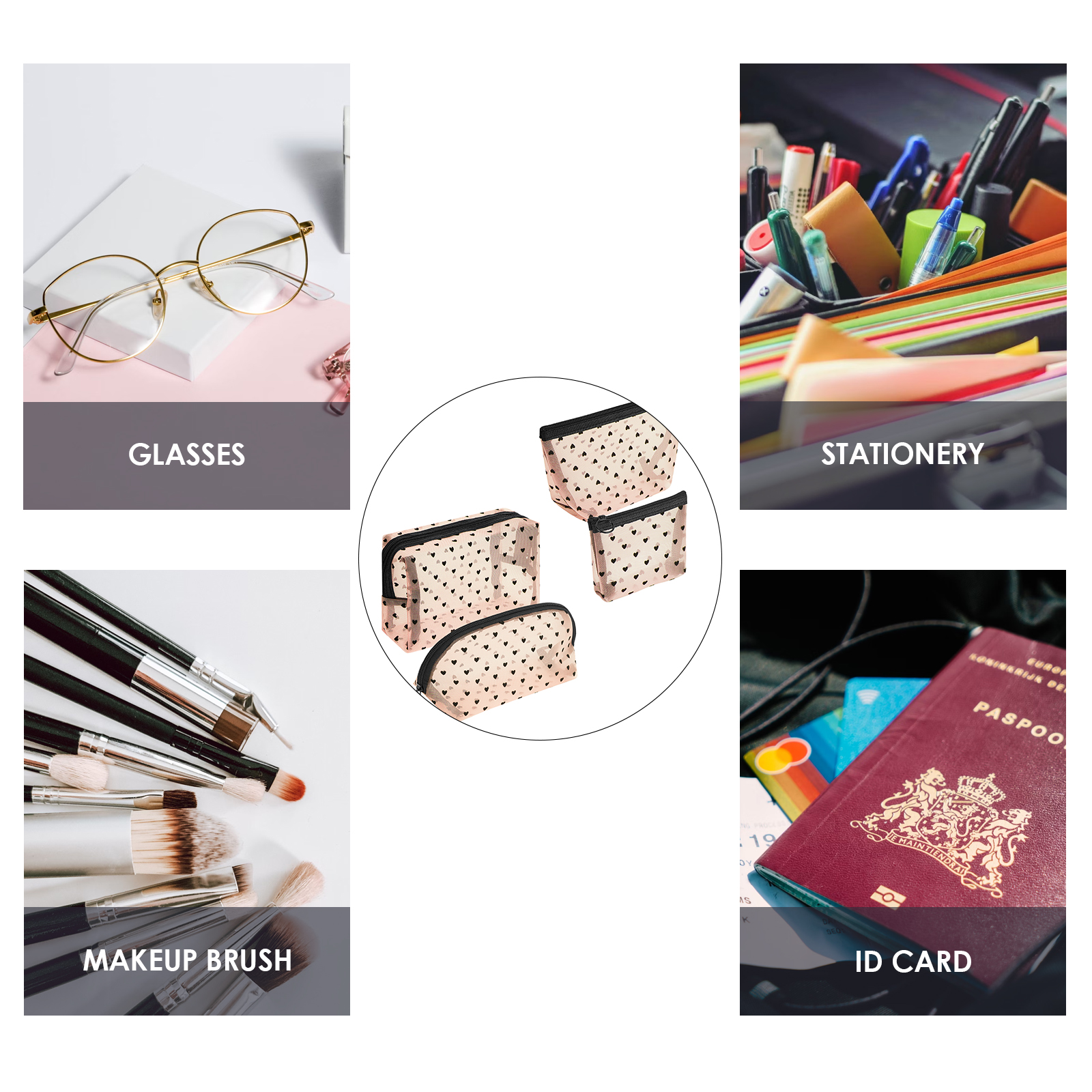 Cosmetic bags have 4 different styles, can store many cosmetics, toiletry products and other small items, such as blushers, lipsticks, tissues, keys, etc.
